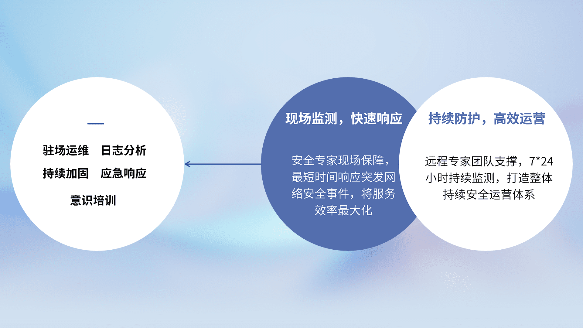 7X24小时持续监测安全事件,保持安全策略有效性,降低资产脆弱性风险,,,精准拦截黑客攻击,,减少被黑客利用的机会,,,,第一时间遏制,,,,降低损失。。。